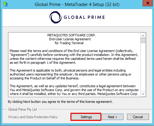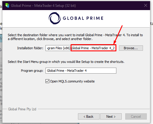 - When you install it change the “settings” to where installs to i.e c:program files (x86)Global Prime – Meta Trader4_1 c:program files (x86)Global Prime – Meta Trader4_2 c:program files (x86)Global Prime – Meta Trader4_3